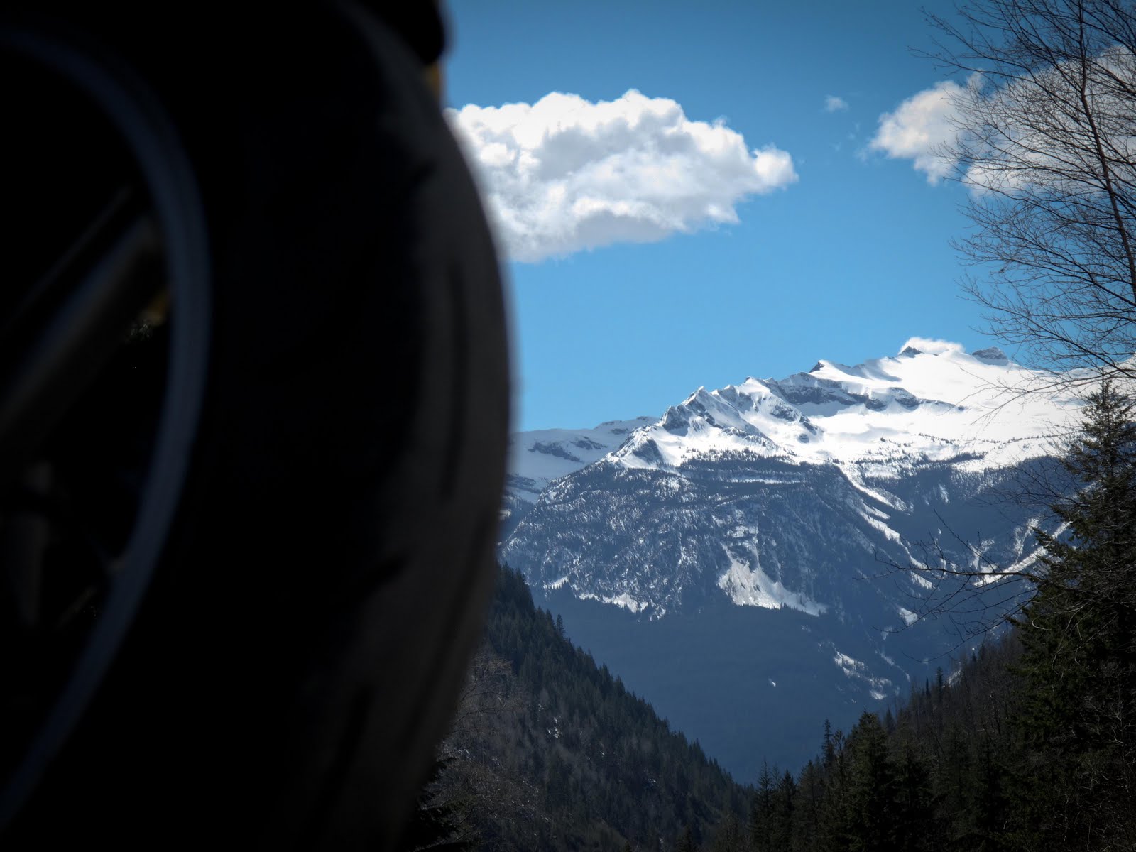 As I was looking out at the snow in the mountains another rider cruised by. I think he gets it, and while it isn't always this great, these kind of days do bring you back and centre a guy.